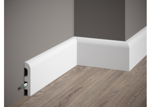 Listwa przypodłogowa to niezastąpiony element wykończenia podłóg, szczególnie listwa MD355 odgrywa istotną rolę zarówno w kwestiach funkcjonalnych, jak i estetycznych. Pełniąc funkcję ochronną, maskuje i chroni dolną część ściany przed uszkodzeniami, które mogą powstać w wyniku codziennego użytkowania, takimi jak uderzenia, zarysowania czy zabrudzenia, będąc tym samym barierą ochronną dla ścian. Jednocześnie listwa przypodłogowa zamyka przestrzeń między ścianą a podłogą, zapewniając estetyczne przejście i maskowanie ewentualnych nierówności czy przestrzeni powstałych w wyniku montażu podłogi. W praktyce pozwala to również na ukrycie kabli oraz przewodów, wspierając zachowanie porządku i czystości wnętrza, co jest szczególnie ważne w nowoczesnych przestrzeniach, gdzie liczy się minimalizm i uporządkowanie. Wymiary listwy: